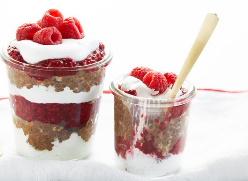 - Csokoládés zab: egy lezárható edénybe keverd jól össze a zabot, a chia magot, a mézet és a kakaóport. Add hozzá a növényi tejet és addig keverd, amíg a kakaópor nem lesz csomós. Fedd le és 2-3 percre hagyd állni. Ezután újra keverd meg. Így nem ragad össze a chia mag. Majd tedd hűtőbe pár órára vagy akár egész éjszakára.