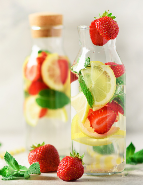 A szamóca igen népszerű hozzávaló a detox víz receptekben. A finom édes ízét tökéletesen ellensúlyozza a citrom fanyar íze és a menta hűsítő aromája. Ha a szamócát a kancsó legaljára teszed, majd rá a jeget és úgy a citromot, három rétegű lesz az ital, zöld mentalevelekkel keverve. Finom, vicces és szép lesz egyszerre.