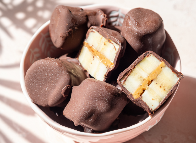 Csupán három összetevőre lesz szükséged: csokoládéra, mogyoróvajra és banánra, és finom, egészséges nassolni valót varázsolhatsz belőlük!